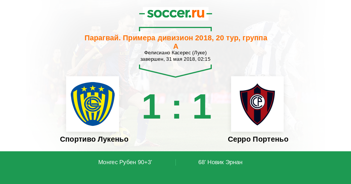 68' (0:1) Новик Эрнан
