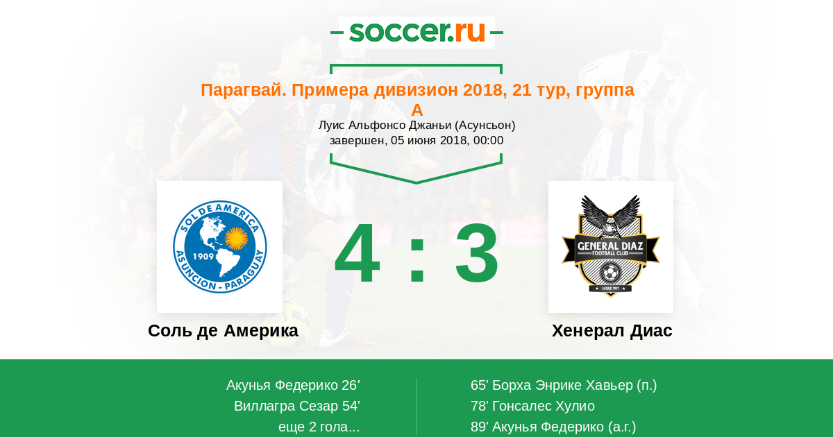Протокол матча Соль де Америка против Хенерал Диас