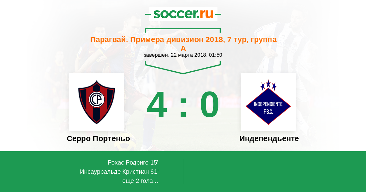 Протокол матча Серро Портеньо против Индепендьенте