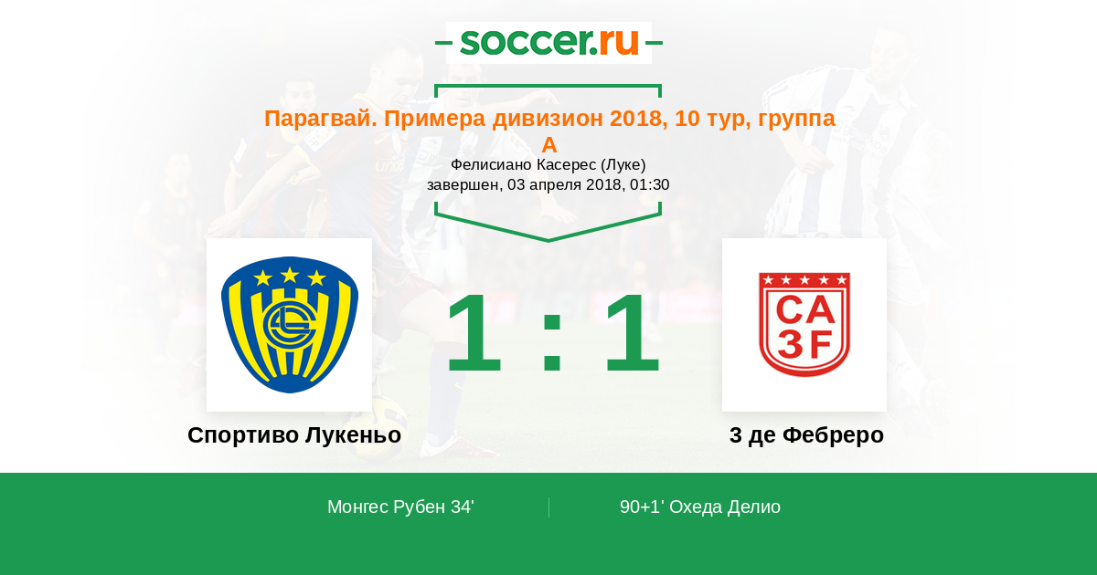 Протокол матча Спортиво Лукеньо против 3 де Фебреро