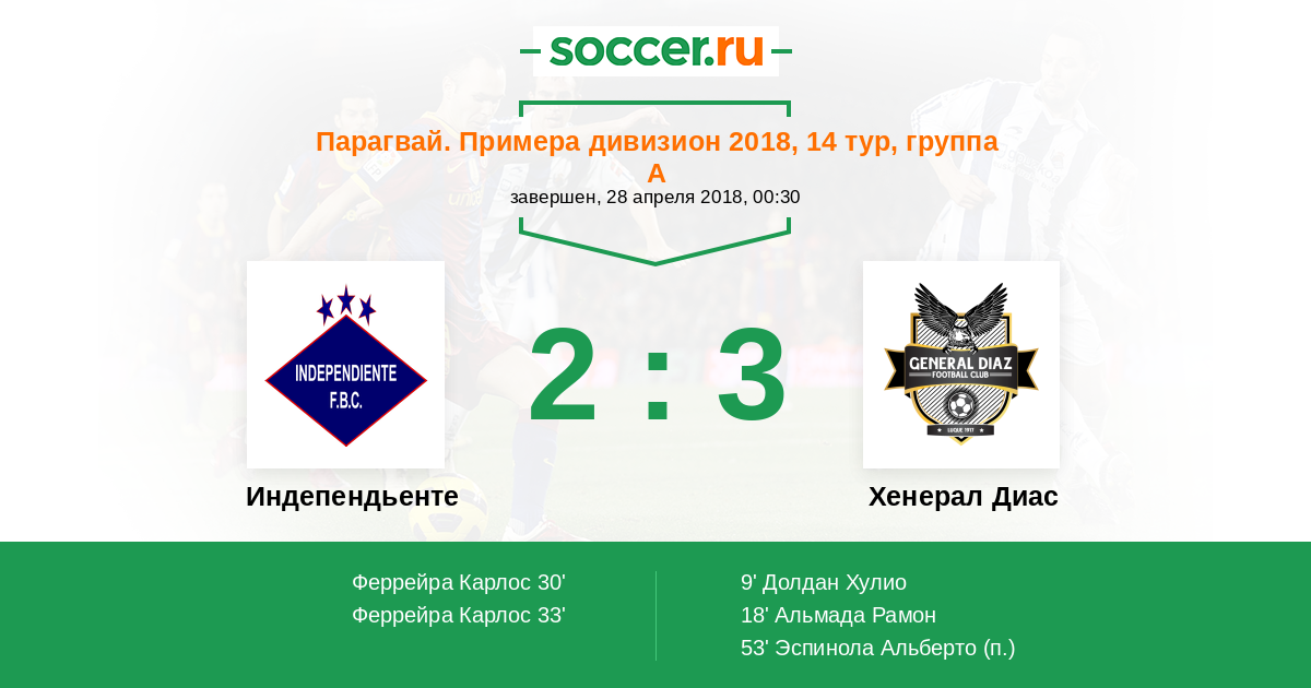 Протокол матча Индепендьенте против Хенерал Диас