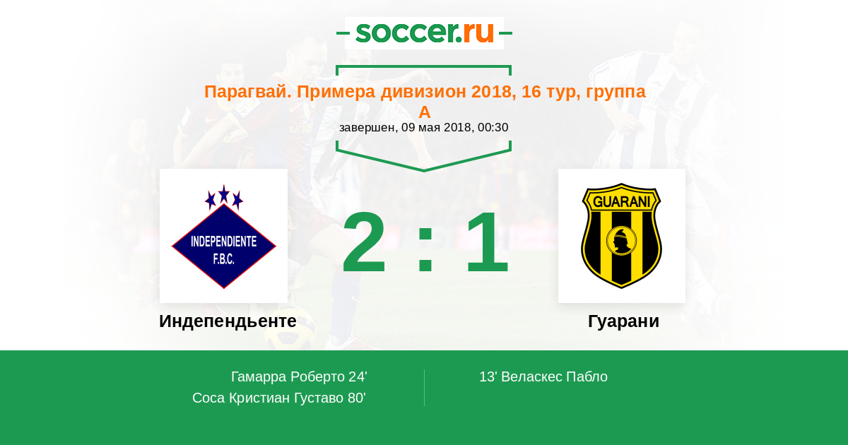 Протокол матча Индепендьенте против Гуарани
