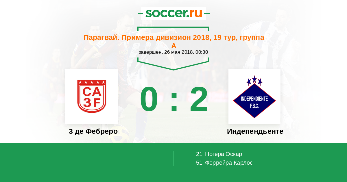 Протокол матча 3 де Фебреро против Индепендьенте