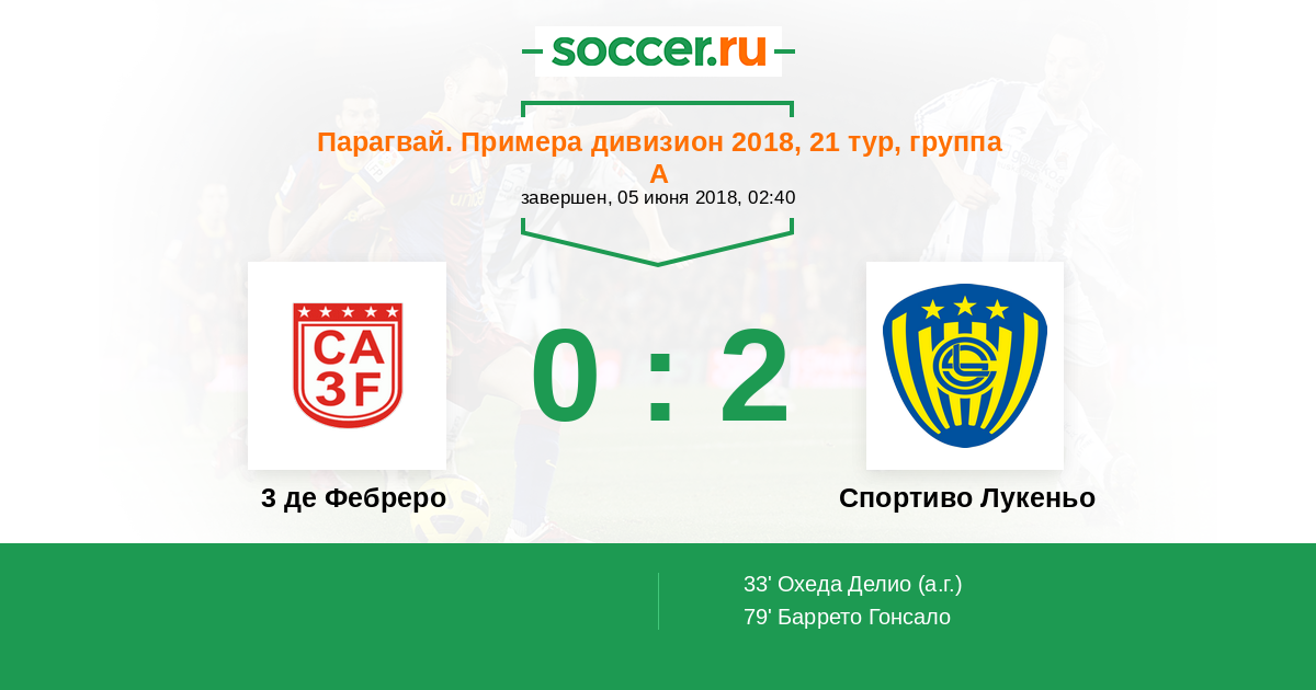 Протокол матча 3 де Фебреро против Спортиво Лукеньо