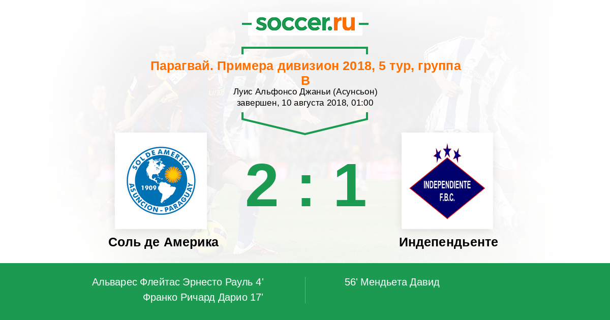 Протокол матча Соль де Америка против Индепендьенте