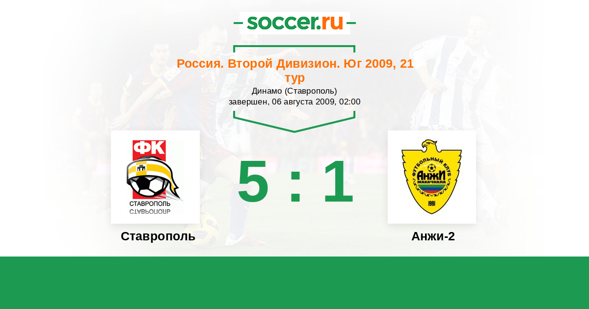 Россия. Вторая лига. Группа 1 20.09.2009 Ставрополь Логотип футбольный клуб Ставрополь 3:1 Логотип футбольный клуб Таганрог Таганрог