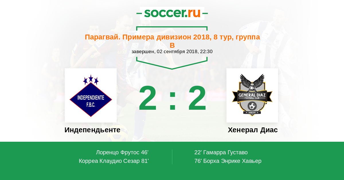 Протокол матча Индепендьенте против Хенерал Диас