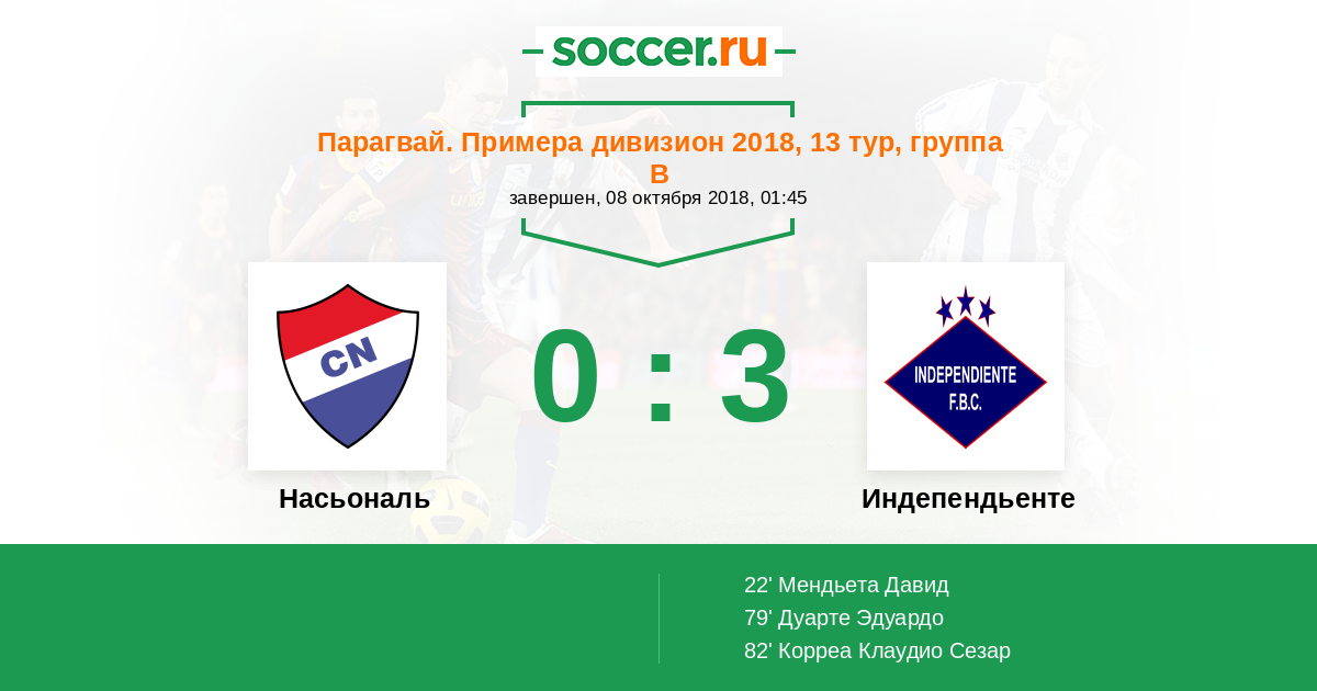 Протокол матча Насьональ против Индепендьенте