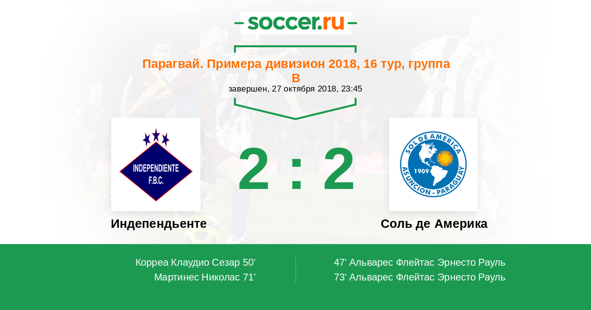 Протокол матча Индепендьенте против Соль де Америка