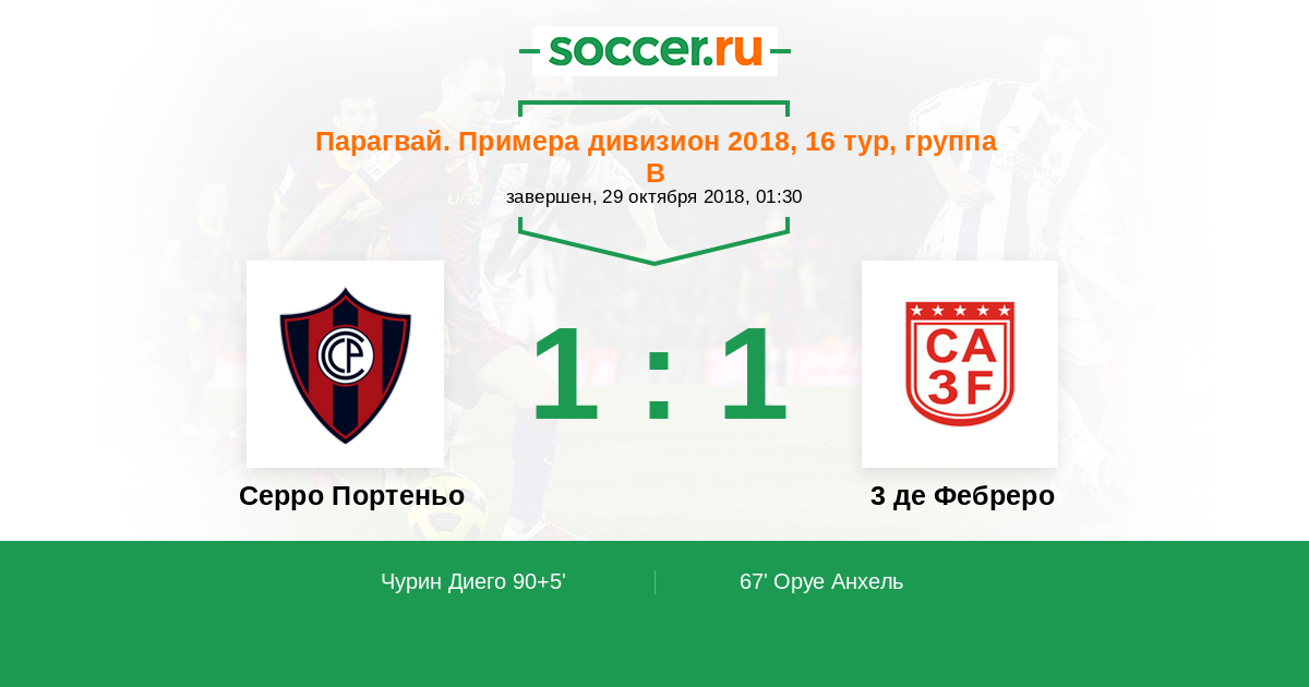 Протокол матча Серро Портеньо против 3 де Фебреро