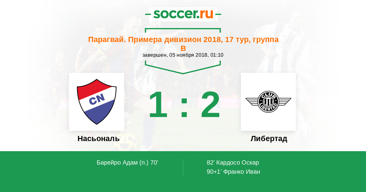 Протокол матча Насьональ против Либертад