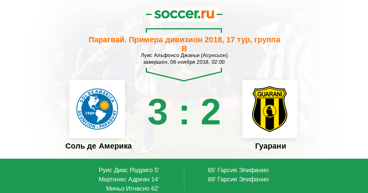 Протокол матча Соль де Америка против Гуарани