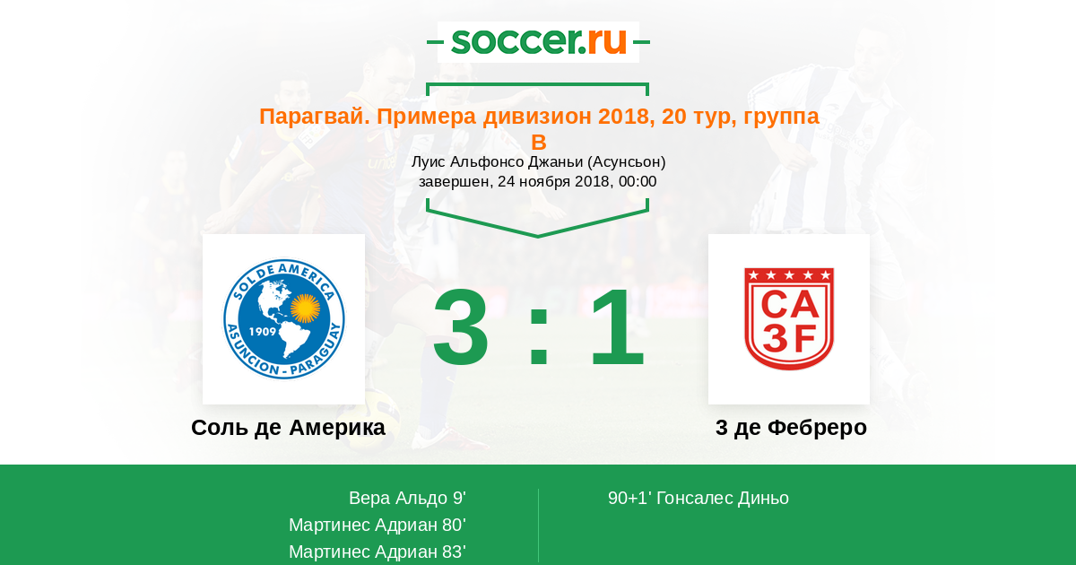 Протокол матча Соль де Америка против 3 де Фебреро