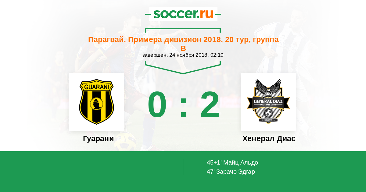 Протокол матча Гуарани против Хенерал Диас