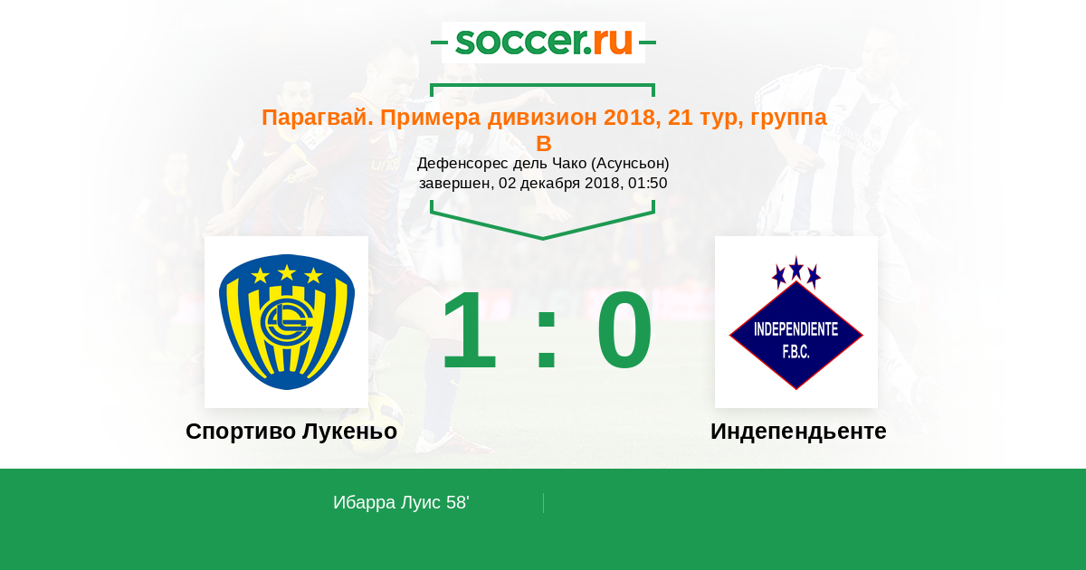 Протокол матча Спортиво Лукеньо против Индепендьенте