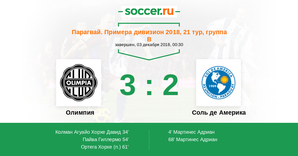 Протокол матча Олимпия против Соль де Америка