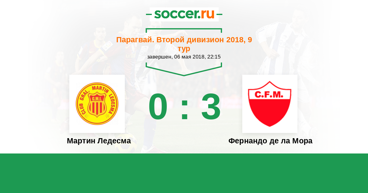 Парагвай. Второй дивизион 12.08.2018 Фернандо де ла Мора Логотип футбольный клуб Фернандо де ла Мора 2:0 Логотип футбольный клуб Мартин Ледесма (Капиата) Мартин Ледесма