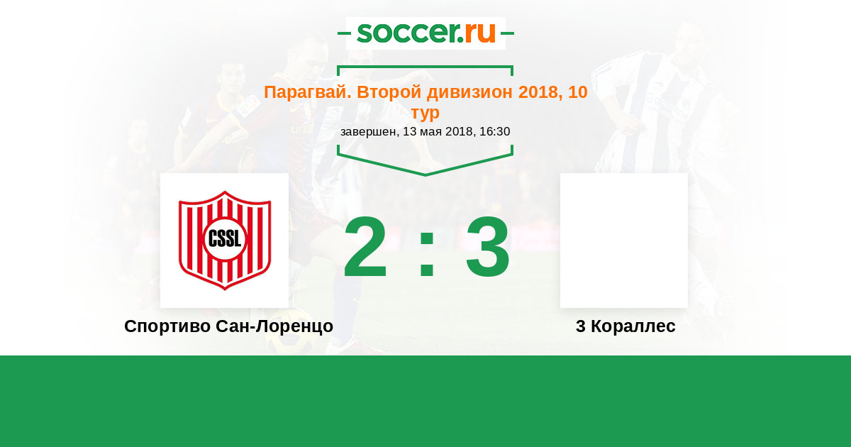 История матча Спортиво Сан-Лоренцо против 3 Кораллес