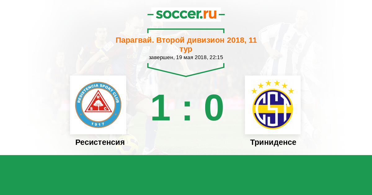 Парагвай. Второй дивизион 18.06.2021 Ресистенсия Логотип футбольный клуб Ресистенсия (Асунсьон) 2:1 Логотип футбольный клуб Триниденсе (Асунсьон) Триниденсе