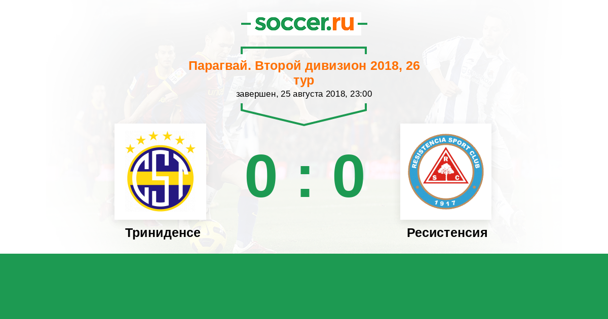 Парагвай. Второй дивизион 19.05.2018 Ресистенсия Логотип футбольный клуб Ресистенсия (Асунсьон) 1:0 Логотип футбольный клуб Триниденсе (Асунсьон) Триниденсе