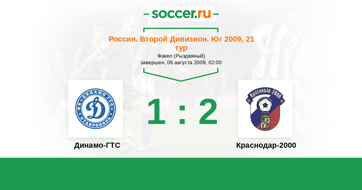 Россия. Вторая лига. Группа 1 17.04.2009 Краснодар-2000 Логотип футбольный клуб Краснодар-2000 1:1 Логотип футбольный клуб Кавказтрансгаз-2005 (Ставрополь) Кавказтрансгаз-2005