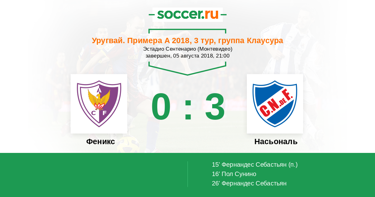 Протокол матча Феникс против Насьональ
