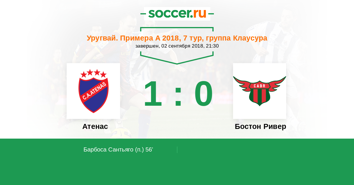 Протокол матча Атенас против Бостон Ривер
