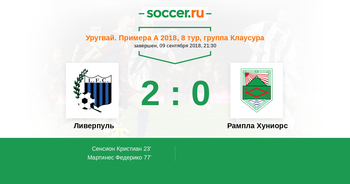 Протокол матча Ливерпуль против Рампла Хуниорс