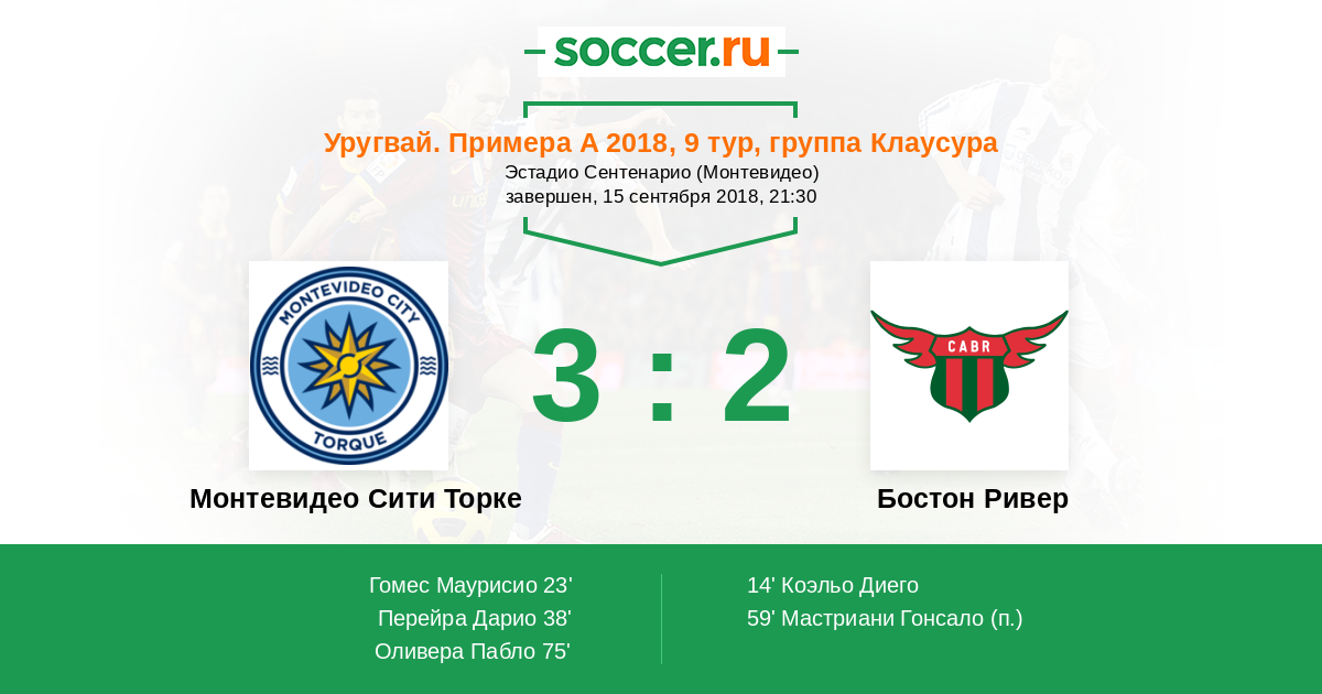 Протокол матча Монтевидео Сити Торке против Бостон Ривер