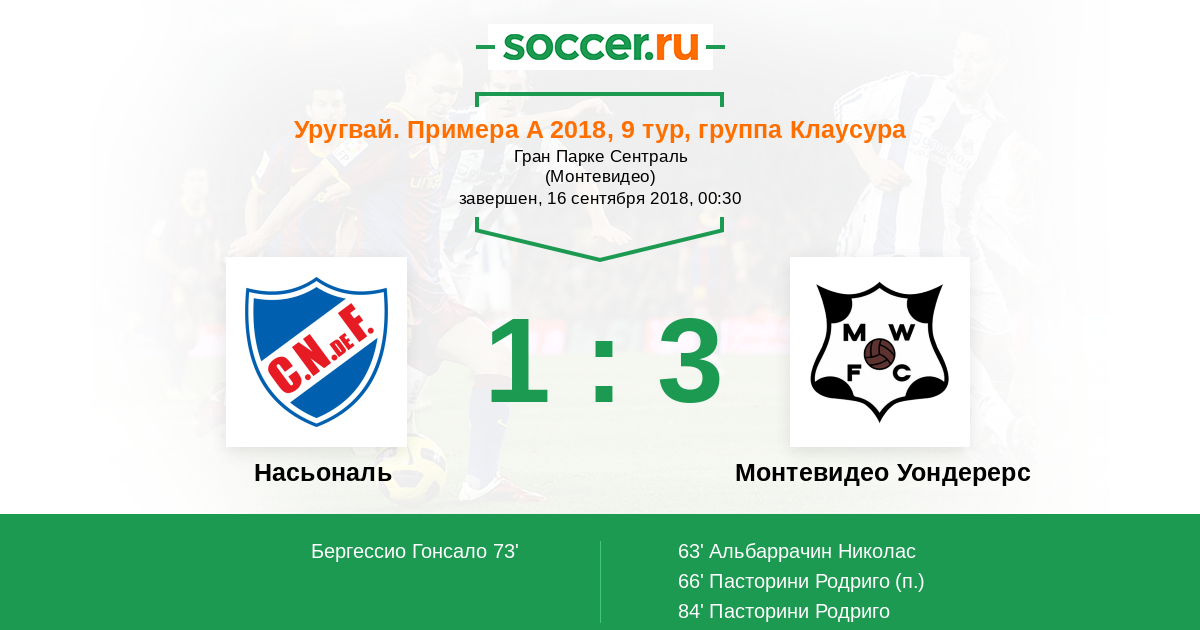 Протокол матча Насьональ против Монтевидео Уондерерс