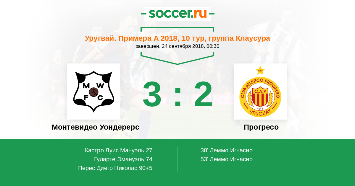 Протокол матча Монтевидео Уондерерс против Прогресо