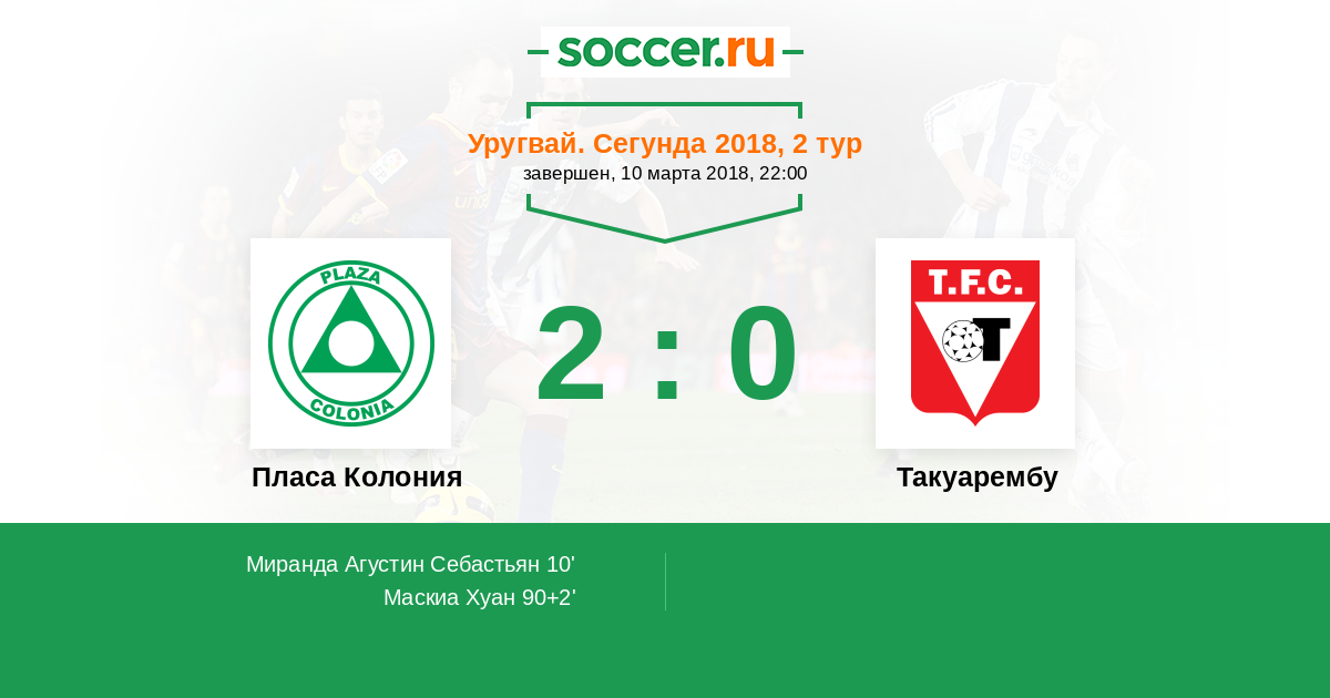 Протокол матча Пласа Колония против Такуарембу