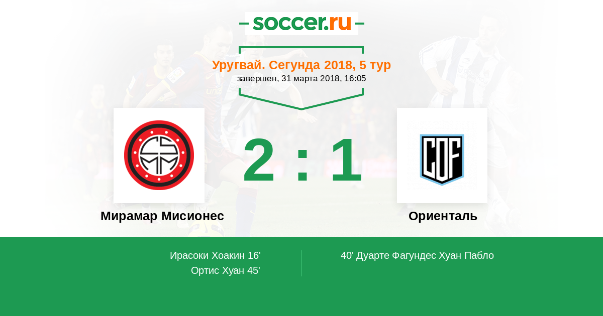 Протокол матча Мирамар Мисионес против Ориенталь