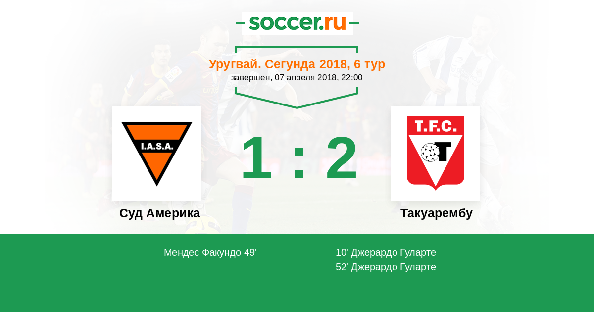 Протокол матча Суд Америка против Такуарембу