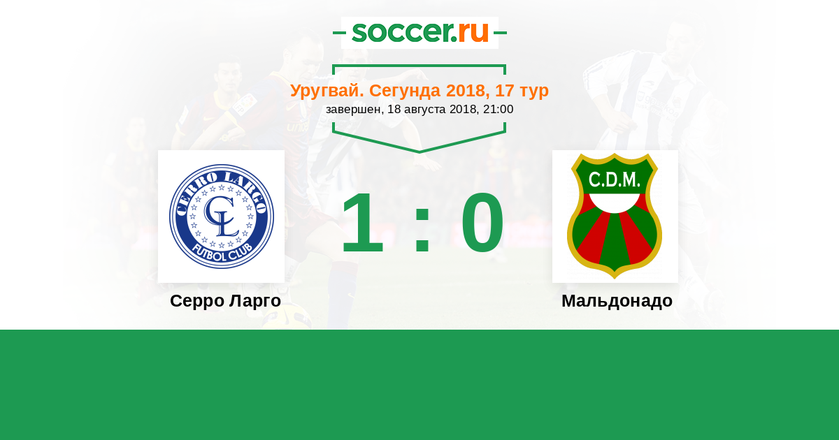 Уругвай. Сегунда 25.03.2018 Мальдонадо Логотип футбольный клуб Мальдонадо 3:1 Логотип футбольный клуб Серро Ларго (Мело) Серро Ларго
