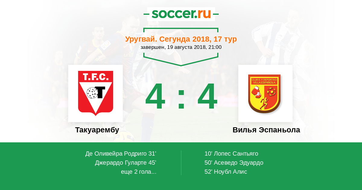 Протокол матча Такуарембу против Вилья Эспаньола