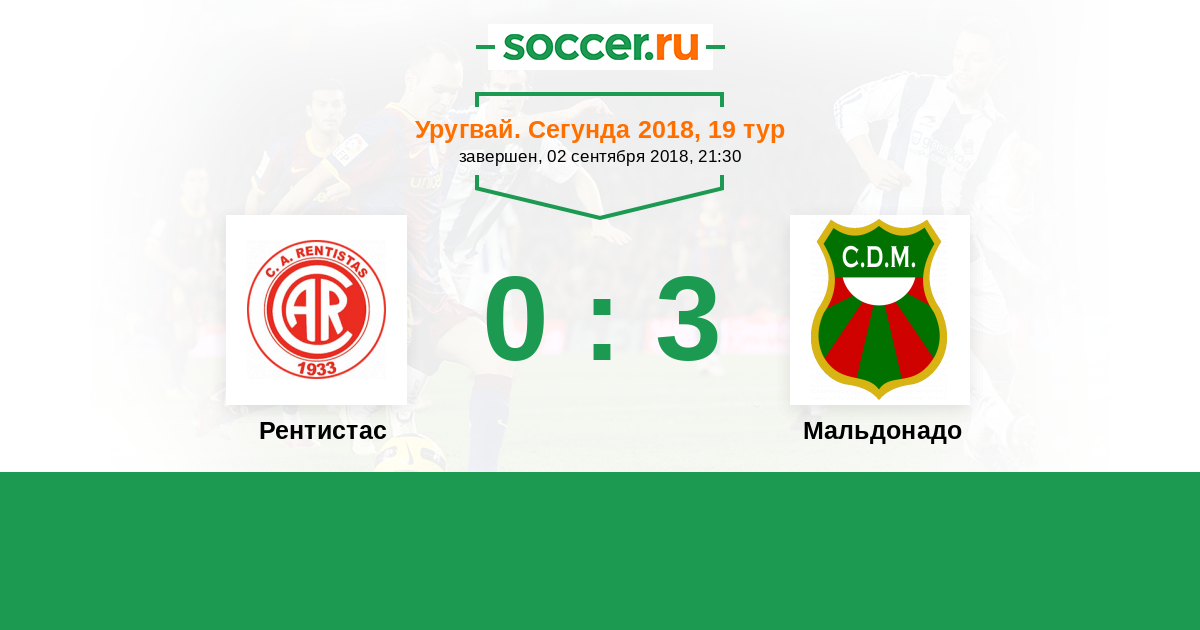 Уругвай. Сегунда 21.09.2019 Рентистас Логотип футбольный клуб Рентистас (Монтевидео) 1:0 Логотип футбольный клуб Мальдонадо Мальдонадо