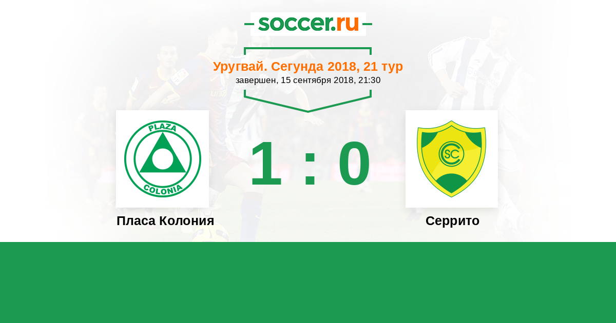 Уругвай. Сегунда 21.04.2018 Серрито Логотип футбольный клуб Серрито (Монтевидео) 2:2 Логотип футбольный клуб Пласа Колония (Колония-дель-Сакраменто) Пласа Колония