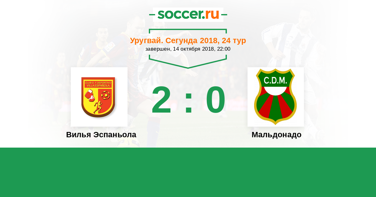 Уругвай. Сегунда 18.10.2014 Мальдонадо Логотип футбольный клуб Мальдонадо 1:1 Логотип футбольный клуб Вилья Эспаньола (Монтевидео) Вилья Эспаньола