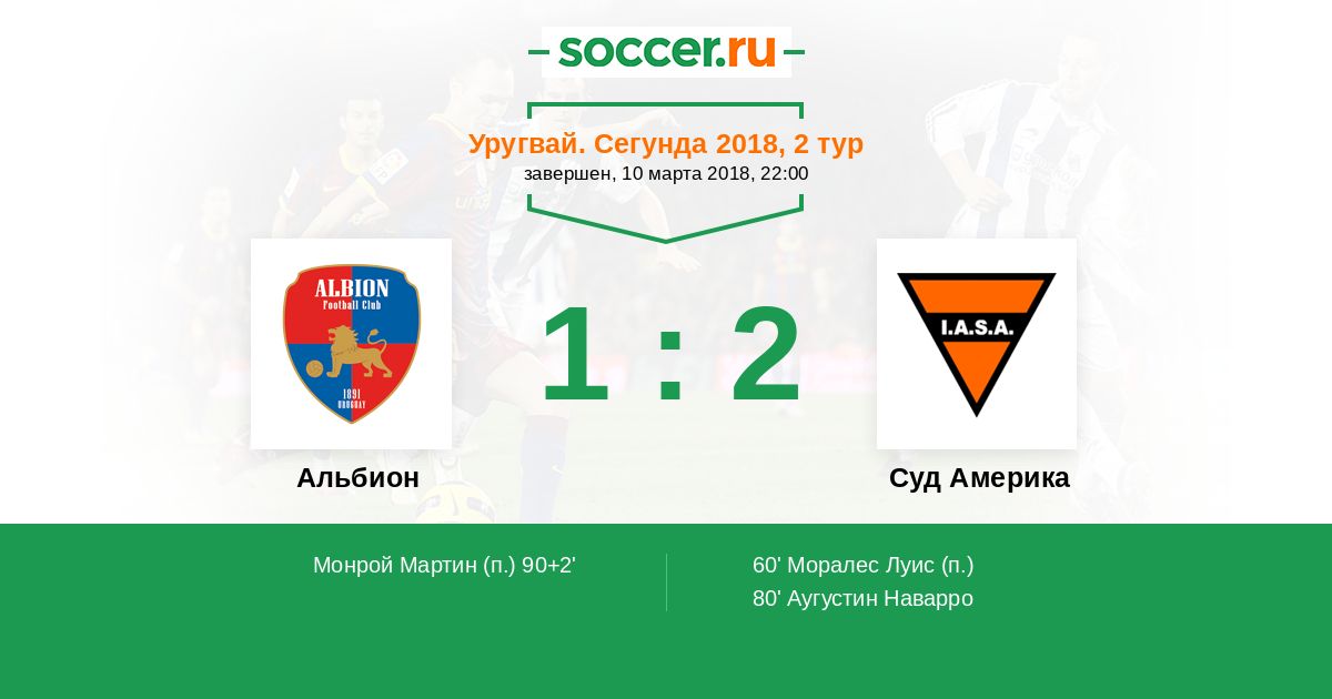 Протокол матча Альбион против Суд Америка