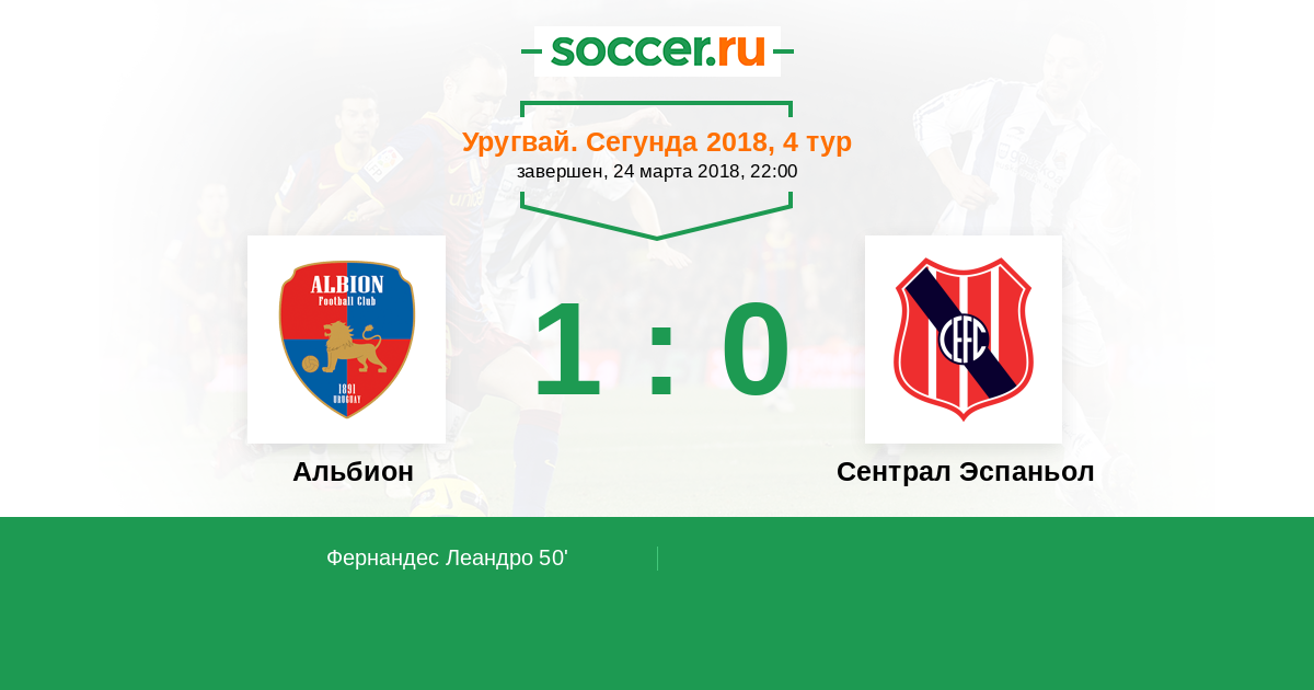 Протокол матча Альбион против Сентрал Эспаньол