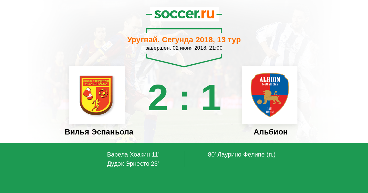 Протокол матча Вилья Эспаньола против Альбион