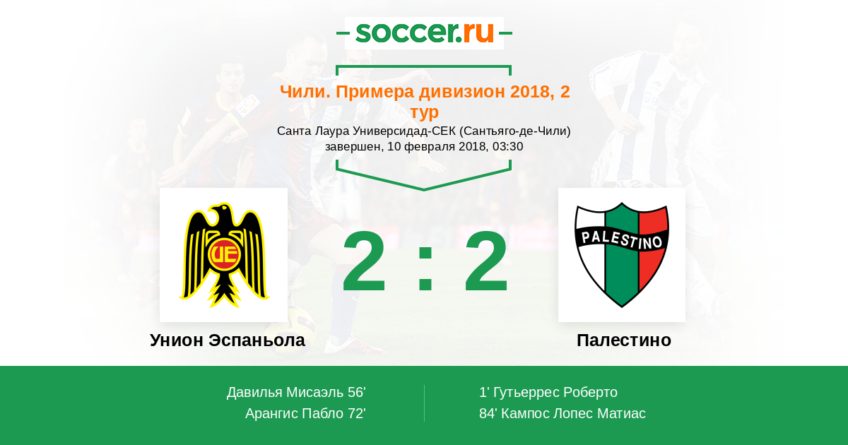 Протокол матча Унион Эспаньола против Палестино