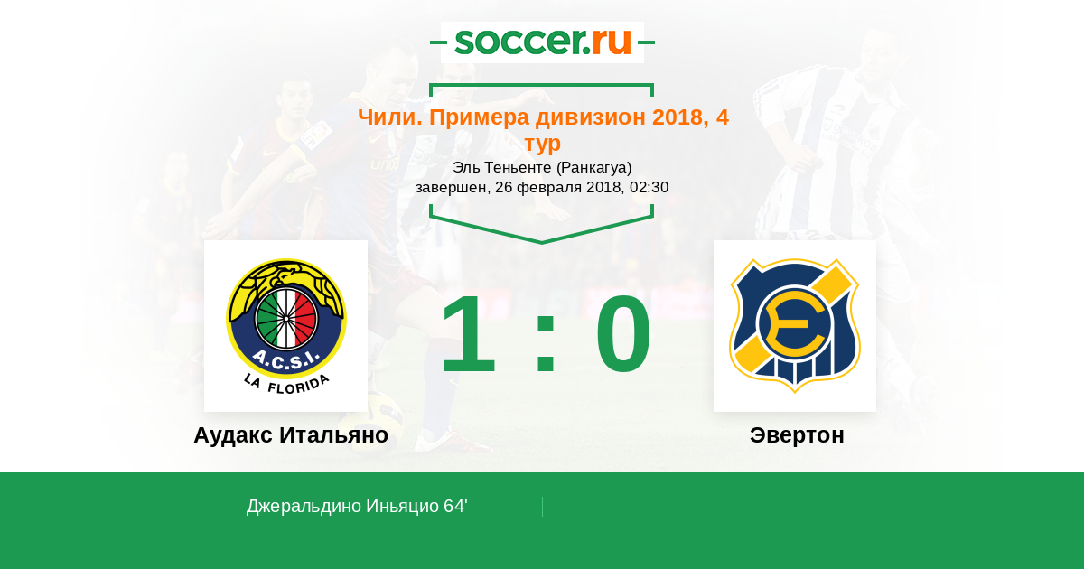 Протокол матча Аудакс Итальяно против Эвертон