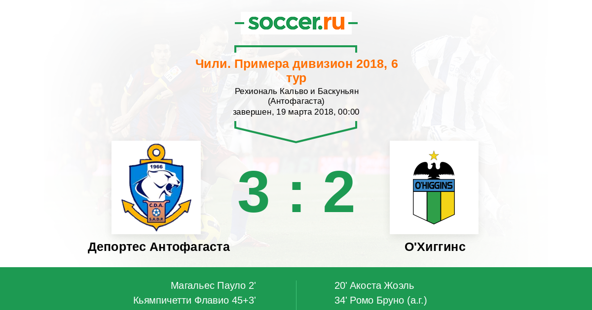 Протокол матча Депортес Антофагаста против О'Хиггинс