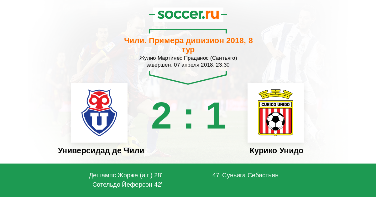 Протокол матча Универсидад де Чили против Курико Унидо