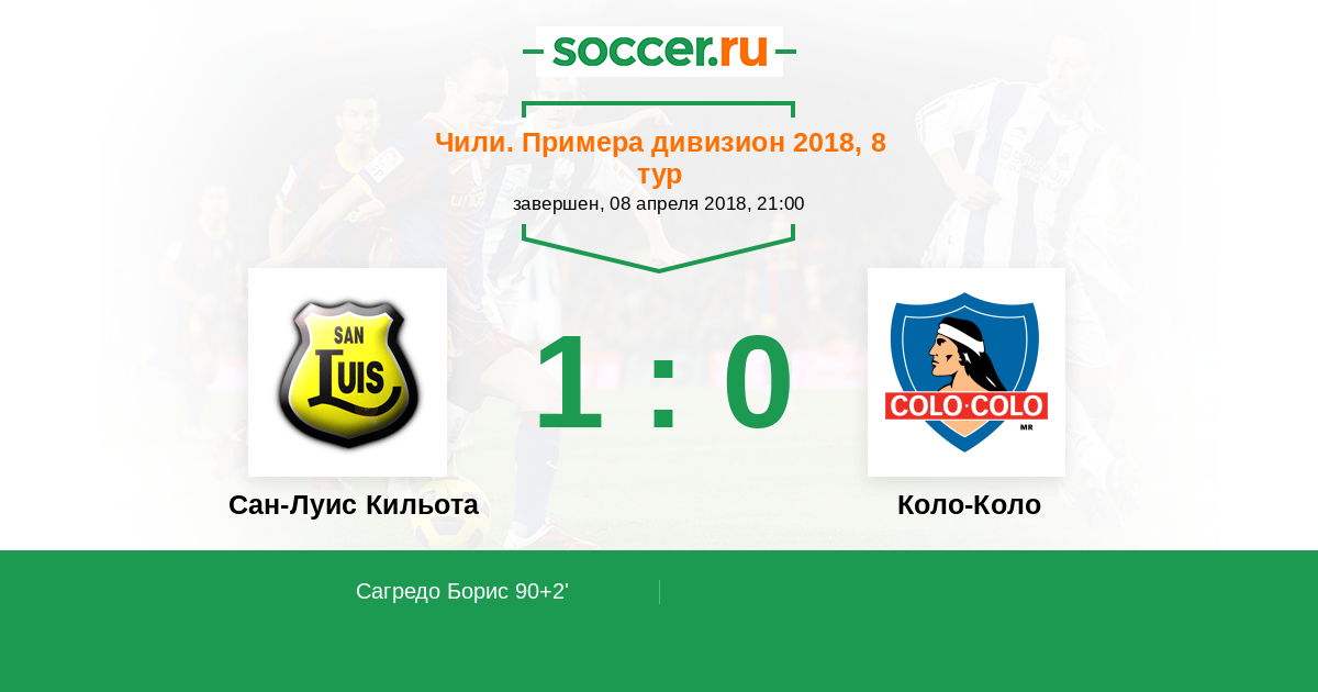Протокол матча Сан-Луис Кильота против Коло-Коло