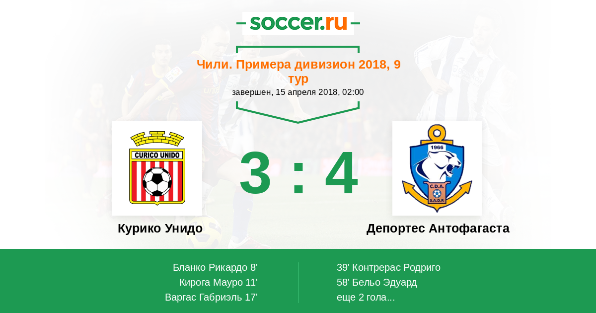 Протокол матча Курико Унидо против Депортес Антофагаста