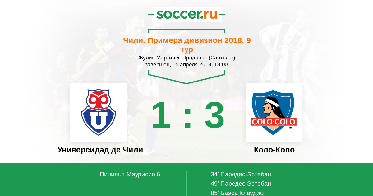49' (1:2) Паредес Эстебан (7) (Вальдивия Хорхе (10))