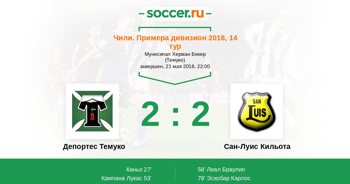 Протокол матча Депортес Темуко против Сан-Луис Кильота